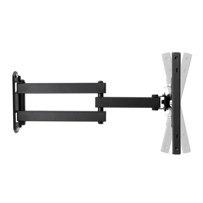 El brazo ARM3 está fabricado en acero de alta resistencia y cuenta con tres puntos de articulación que permiten un ajuste versátil para distintas posiciones de uso. Su estructura robusta incorpora gestión interna del cableado, lo que mantiene una instalación limpia y segura. Ofrece inclinación ajustable de 0° a 7° y rotación completa de 360°, facilitando la interacción del usuario en múltiples ángulos. El brazo extendido alcanza hasta 350 mm y se fija mediante una base compacta con dos tornillos, garantizando estabilidad en muros y estructuras verticales.
