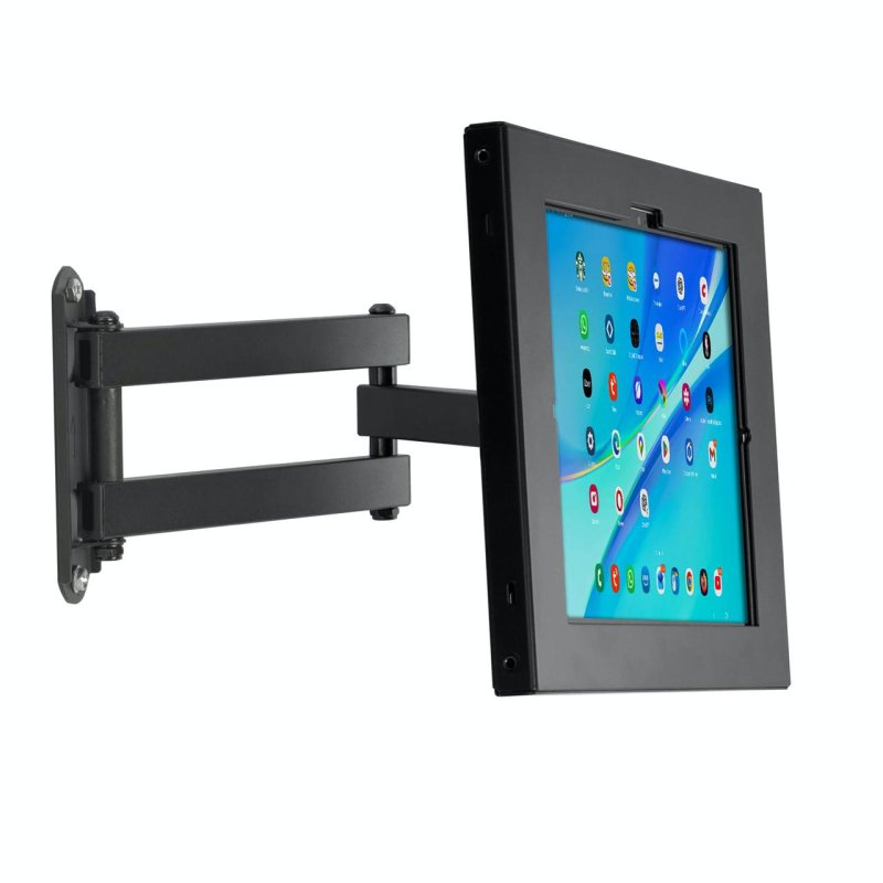 El TSCARM3W06 es un sistema profesional de montaje y seguridad diseñado para la instalación de tabletas en paredes y superficies verticales donde se requiere movilidad, resistencia y protección antirrobo. Este conjunto combina un brazo articulado metálico de alta resistencia con una caja de seguridad reforzada, ofreciendo una solución confiable para aplicaciones comerciales e institucionales.