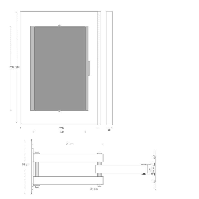 El TSCLK13W07MI es un sistema de montaje antirrobo diseñado para instalar tabletas de forma segura, estable y profesional en entornos comerciales, corporativos e institucionales. Este conjunto integra un soporte metálico de alta resistencia con una caja de seguridad reforzada, proporcionando una solución confiable que protege el dispositivo contra robos, manipulaciones no autorizadas y daños accidentales, mientras mantiene una presentación estética y funcional.