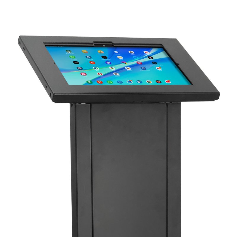 El TSCLK30W06 es un sistema profesional de seguridad diseñado para la instalación fija de tabletas en espacios públicos y comerciales donde se requiere estabilidad, protección y una presentación ordenada. Este modelo integra un pedestal metálico de piso con una caja antirrobo reforzada, ofreciendo una solución robusta y confiable para entornos de alto tránsito.